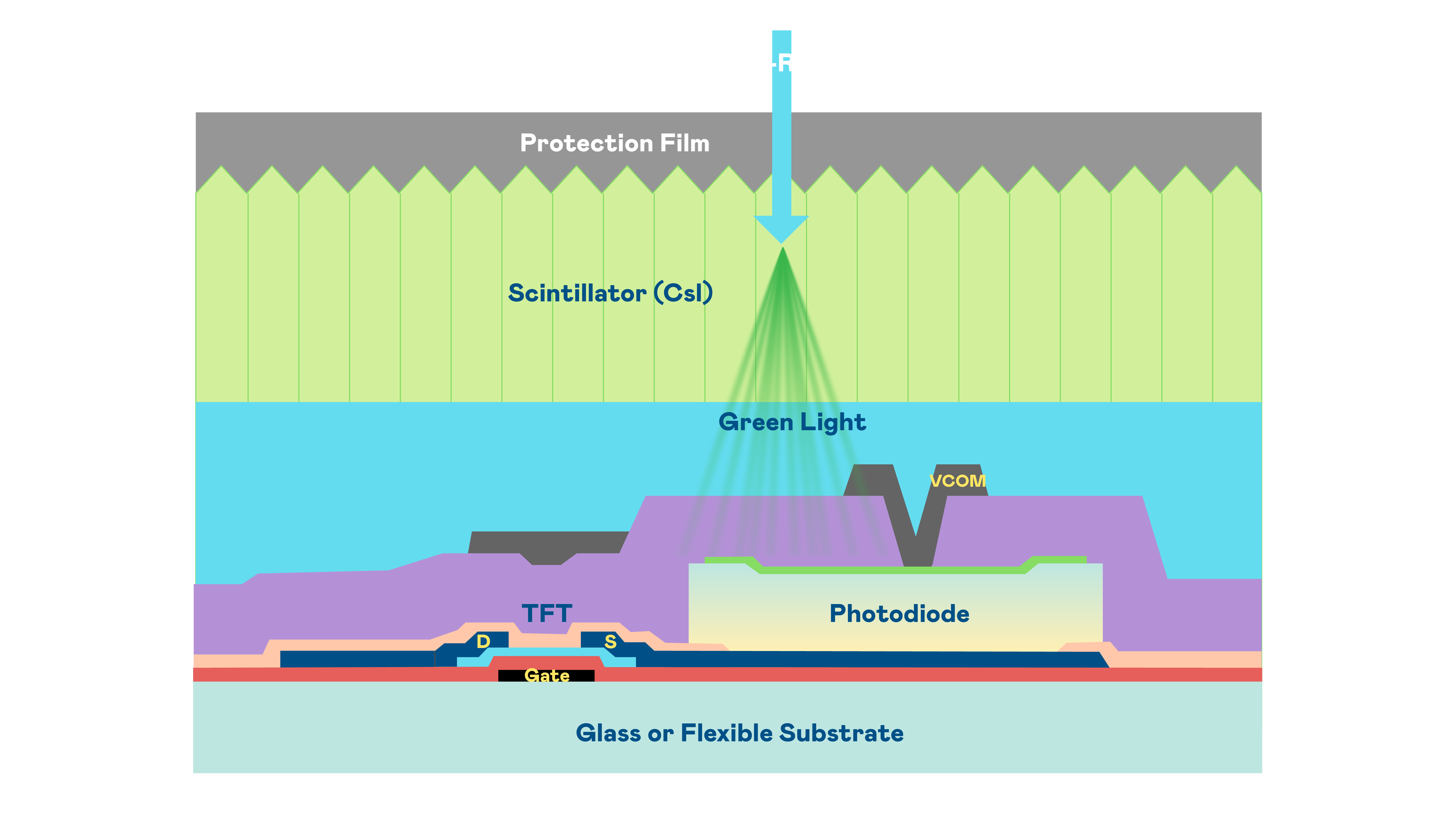 j9九游会(中国)官方网站的X光影像感测阵列使用薄膜电晶体 (TFT) 作为每个像素的读取开关,搭配光电二极体(Photodiode)的光电转换元件,用以感测X光影像讯号。